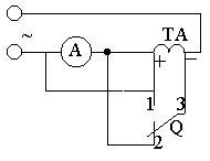 電流互感器接線如圖3所示。圖中Q為單級雙投開關(guān)。當(dāng)開關(guān)投向"1"時(shí),電流表的讀數(shù)較小,投至"2"時(shí)讀數(shù)較大,則證明是減極性,杏則為加極性。
