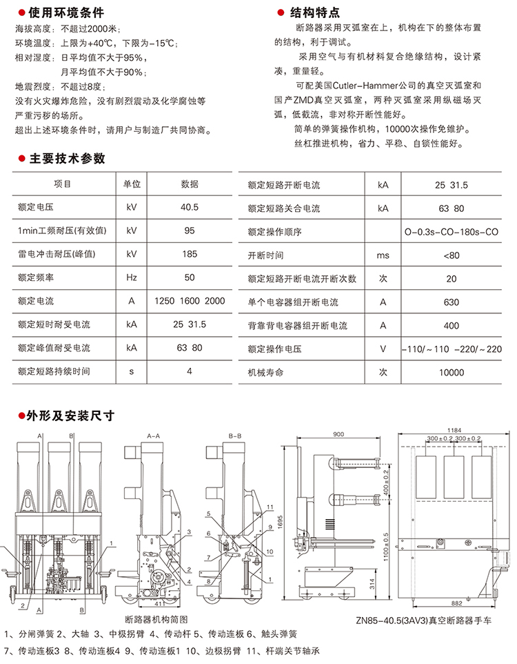 ZN85-40.5戶內高壓真空斷路器